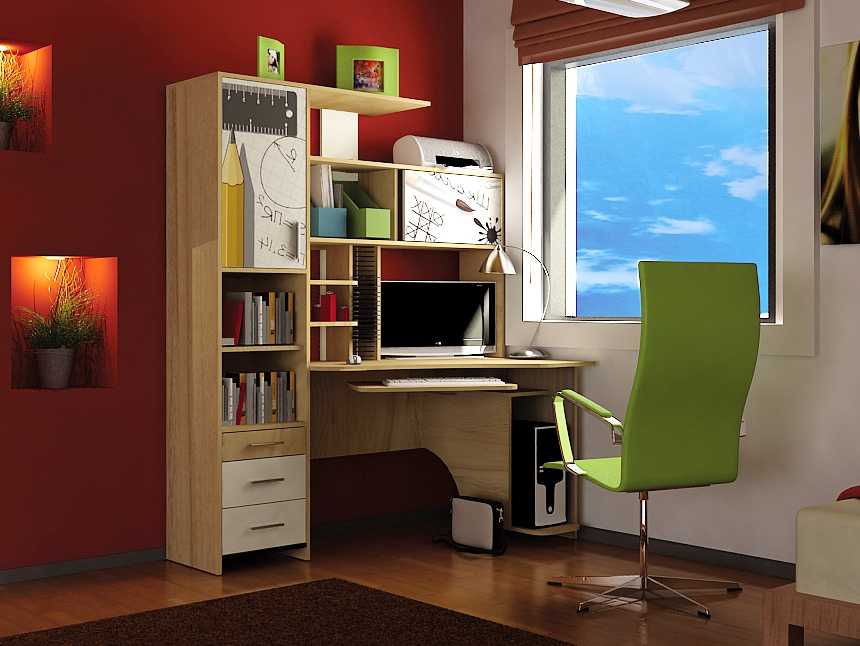 Данная угловая конструкция прекрасно подойдет для студентов и школьников. Вместительность модели обусловлена большим количеством различных полочек, ниш, шкафчиков и ящичков, а также самой столешницей. Несмотря на это, сам Бейсик-Скул имеет довольно компактные габариты, позволяя устанавливать его даже в небольшой комнате.