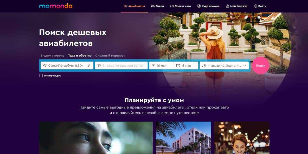 Aviasales покрывает весь спектр туристических услуг – помимо авиабилетов предлагает бронирование номеров в отелях, аренду автомобиля и оформление страховки.