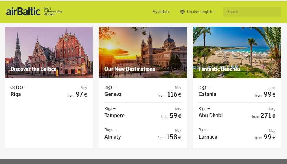 направлениям из Риги, Таллина и Вильнюса по Европе и за ее пределами.