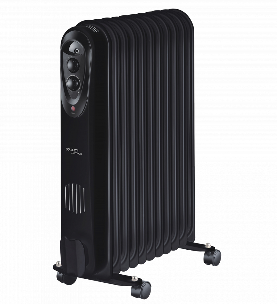 Преимущество масляных обогревателей в том, что нагревательный элемент в них не контактирует с воздухом или поверхностью прибора. Он погружен в масло и с помощью его нагревания отдает тепло окружающему пространству.