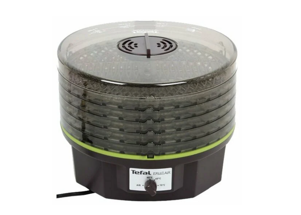 Компактная конвективная сушилка для овощей и фруктов с механическим управлением. Может использоваться для сушки большого объема продуктов. Мощность — 1000 Вт, по умолчанию поставляется с пятью поддонами по 40 мм высотой, суммарно можно одновременно использовать до 15 лотков.
