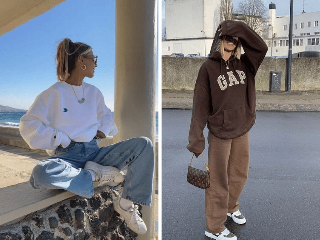 Тем, кто предпочитает минимализм, придутся по душе толстовки в нейтральных оттенках и с лаконичными надписями, а любительницам дерзких образов стоит обратить внимание на яркие изделия с принтами. Фотоколлаж Ольги Назаровой