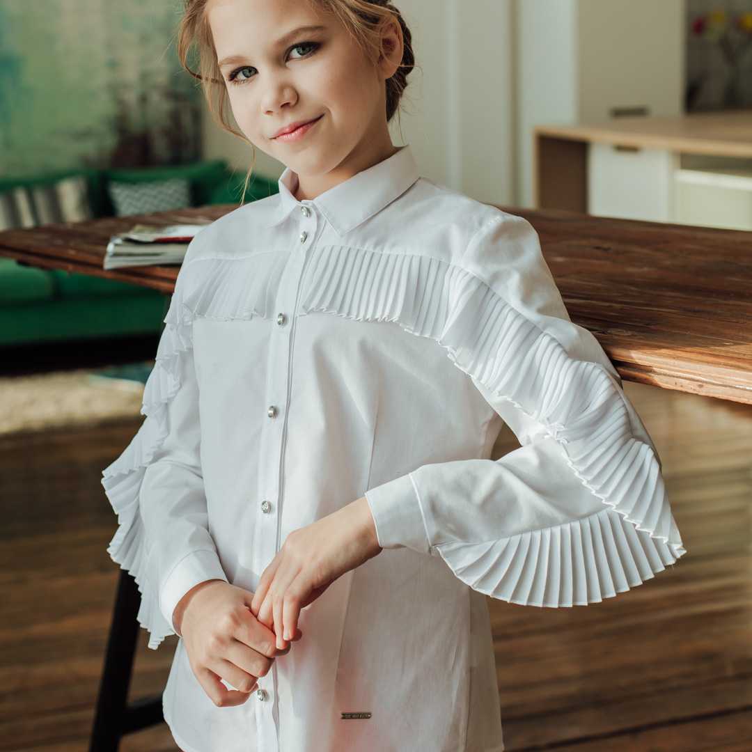 Белоснежная рубашка или блузка – это неотъемлемая часть школьной формы, которая прекрасно дополняет любые брюки, юбку или сарафан. Стоит отметить, что ее цветовое решение может быть не только белым, но и бежевым, нежно-голубым или цвета айвори. Современные дизайнеры украсили этот элемент гардероба следующим декором: