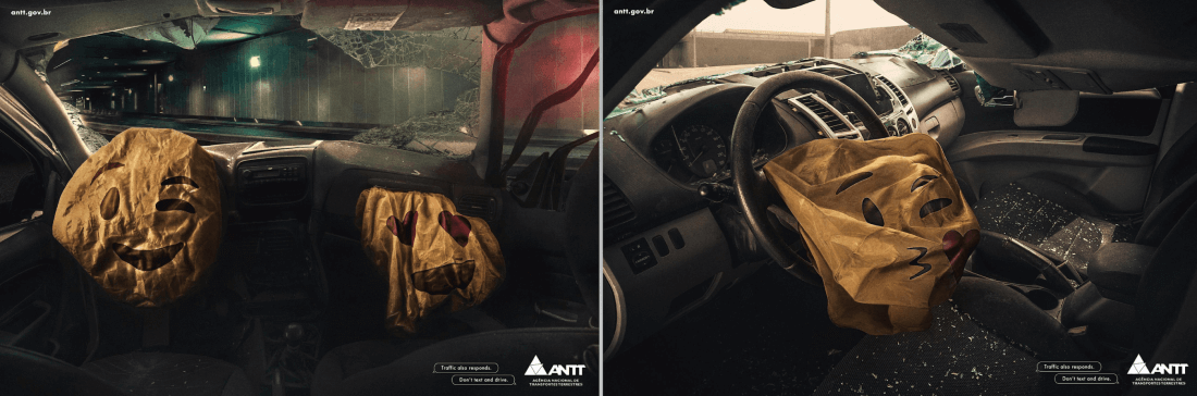 Национальное агентство наземного транспорта в Бразилии тоже выпустило социальную рекламу безопасности дорожного движения, посыл которой передан ярче и нагляднее.