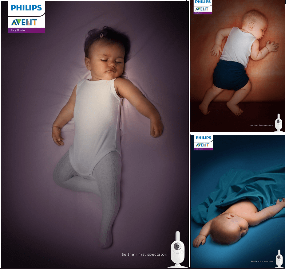 Румынское рекламное агентство FCB разработало интересные рекламные плакаты для радионяни Philips Avent с концепцией «Наблюдайте за талантами ваших детей, даже когда они спят. Будьте их первым зрителем!». Спящие малыши в рекламе занимаются балетом, плаванием и спринтом.