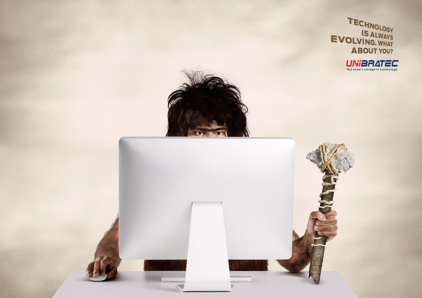 Вот пример. Бразильский университет компьютерных технологий выпустил рекламу с пещерным человеком и надписью: «Технологии всегда развиваются. А ты?».