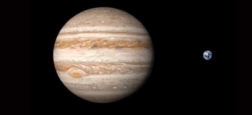 Юпитер составляет 318 масс Земли. Для сравнения, Солнце весит как 1050 Юпитеров.