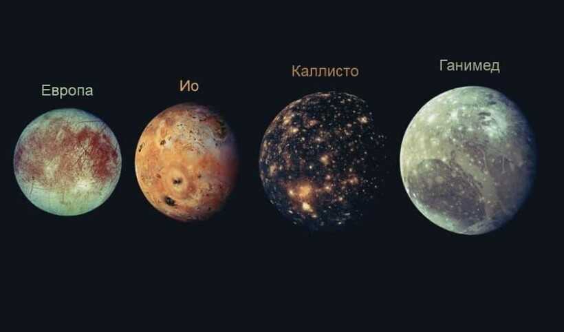 Европа, Ио, Каллисто и Ганимед — первые спутники Юпитера, открытые Галилео Галилеем