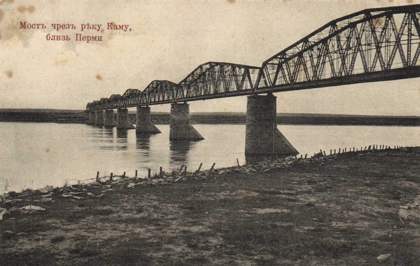 Камский железнодорожный мост входит в число крупнейших инженерных сооружений России начала XX века. Проект пролетных строений, разработанный инженером Е.Н. Ададуровым, был утвержден Управлением постройки Сибирской железной дороги 30 апреля 1896 г. Строительство началось в 1897 г. Торжественное открытие состоялось 27 января 1899 г. в Перми.