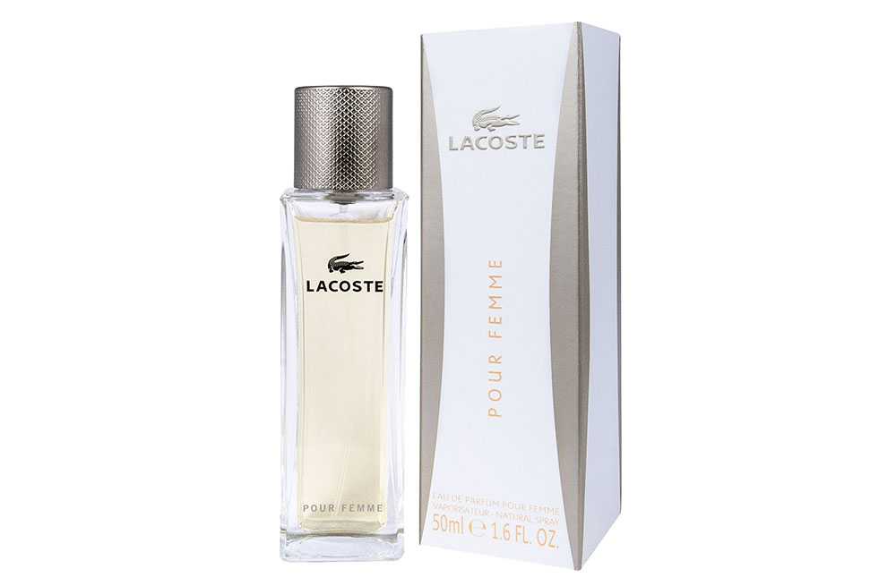 Бренд Lacoste представлен в наименьшем количестве, и предлагает на выбор 58 различных парфюмов. Ранний аромат появился в 1984 году, и Lacoste до сих пор радует покупателей свежими новинками. Множество духов бренда нацелены на молодых амбициозных девушек, которые знают, чего хотят от жизни, и идут к своей цели. Нередко свежие нотки цитрусовых и ягод разбавляет жасмин и пачули, подкрепленные изящными акватическими и свежими нотками. Многие наверняка знают, что бренд Lacoste часто ассоциируется с мужскими «спортивными» ароматами, но и для женщин парфюмеры подготовили потрясающий букет из цветов и фруктов.