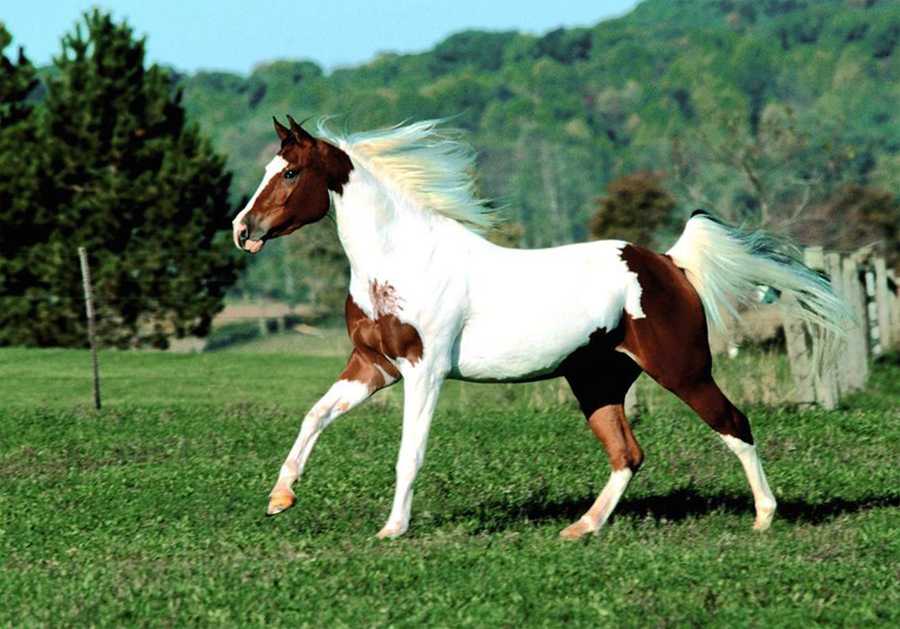 Это очень красивая порода, известная к тому же на весь мир. Отличаются особой выносливостью, что делает арабских скакунов незаменимыми на конных пробегах и скачках. Такой скакун прекрасно подойдет как для спортсмена-любителя, так и для верховой езды непрофессионала. Родом арабские скакуны с Аравийского полуострова (вывели их в IV-VII веках до н.э.). Их отличительными чертами являются глаза больших размеров, голова, несколько вогнутая, а также своеобразный хвост, называемый «петушиным» и поднимающийся высоко вверх при аллюре.
