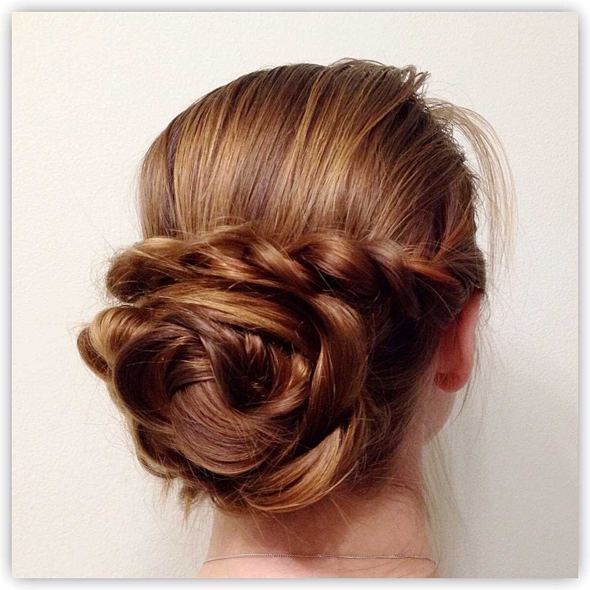 Если у вас длинные густые волосы, вместо жгута заплетите косу-колосок и заверните ее по спирали, фиксируя шпильками.