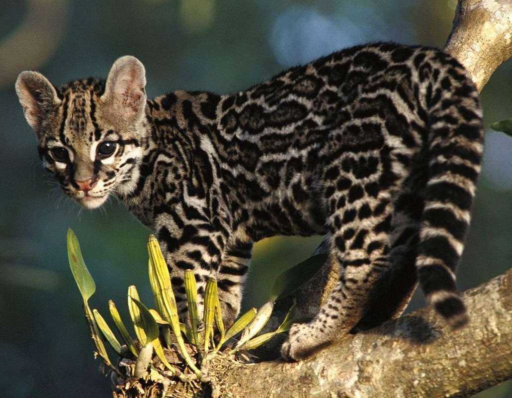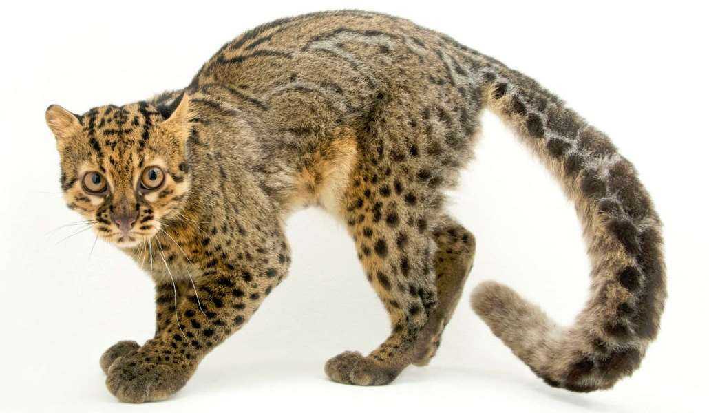 Миниатюрная копия ягуара, как следует из названия. У них гибкое тело и сильные, но короткие ноги. Высота в холке до 35/30 см (самцы/самки). Весит до 9 кг. Встречается в различных местах обитания, таких как саванны, леса и тропики. Скрытное животное, но ведет дневной образ жизни. Питается мелкими млекопитающими, земноводными, птицами и рыбой.
