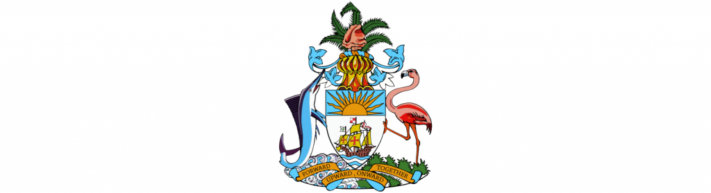 Под щитом на девизной ленте написаны слова — «Вместе вперед, выше и дальше». В этом девизе — мечта молодой нации достичь прогресса и процветания путем совместных усилий всех социальных групп багамского общества.