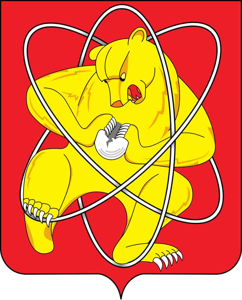 И его герб мы, пожалуй, смело можем назвать одним из самых необычных в мире: на алом фоне жёлтый медведь проводит опасный эксперимент – разрывает когтями белое ядро атома, упираясь лапами в его орбитали.