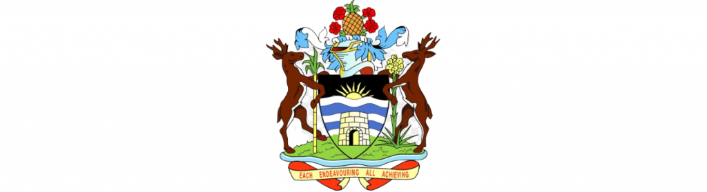 Над шлемом расположен рыцарский шлем, увенчанный ананасом. Кроме того герб украшают и красный гибискус, растущий на островах, и сахарный тростник и знаменитая юкка. Все эти растения являются национальным достоянием островного государства, а доход от их продажи занимает значительную часть государственного бюджета.
