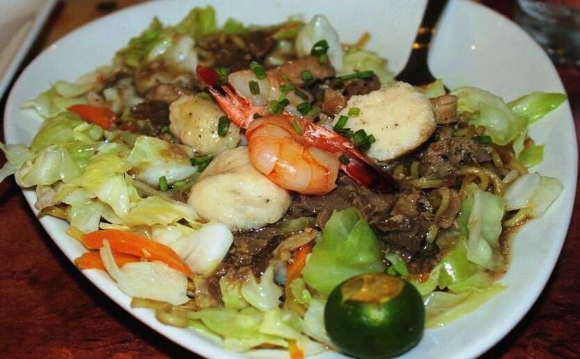 У туристов на Филиппинах это одно из любимых блюд. Оно сытное, пряное, маслянистое, ароматное – оторваться невозможно. Пансит всегда готовят из жареной лапши с соевым соусом. К ней вам нужно выбрать основной наполнитель: свинину, курицу, рыбу, морепродукты, яйца, грибы, бобы или микс из этих продуктов. Третий герой филиппинского блюда – овощная смесь. Капуста, морковь, лук, томаты – набор на усмотрение повара. Овощи тушат в пикантном пряном соусе. Легендарное блюдо есть в меню большинства ресторанов на Филиппинах и почти в каждой уличной закусочной. По вкусу оно напоминает знакомые многим «воки».