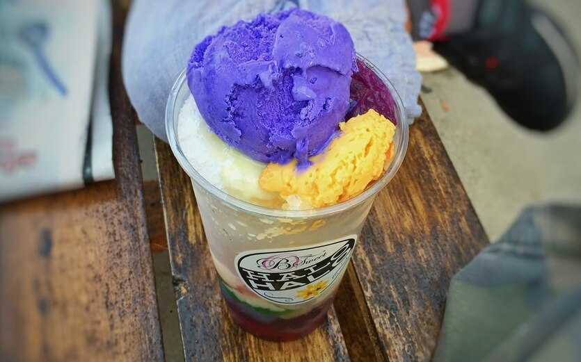 Филиппинский десерт приводит в восторг каждого ребенка. Он яркий, необычный, приятный на вкус. Взрослые сладкоежки тоже к нему не равнодушны. Только представьте эту смесь: шейк из сгущенки с колотым льдом, мякоть кокоса и сердцевины пальмы, сладкий клейкий рис и экзотические бобы, хрустящие кукурузные хлопья, цветной мармелад, корнеплоды в сахарном сиропе, желеобразные шарики тапиоки, экзотические фрукты. Все это увенчано сиреневым шариком мороженого. Десерт хало-хало на Филиппинах подают в высоком стакане или в половинке кокоса. Обязательно попробуйте – сочетание текстур и вкусов впечатляет!