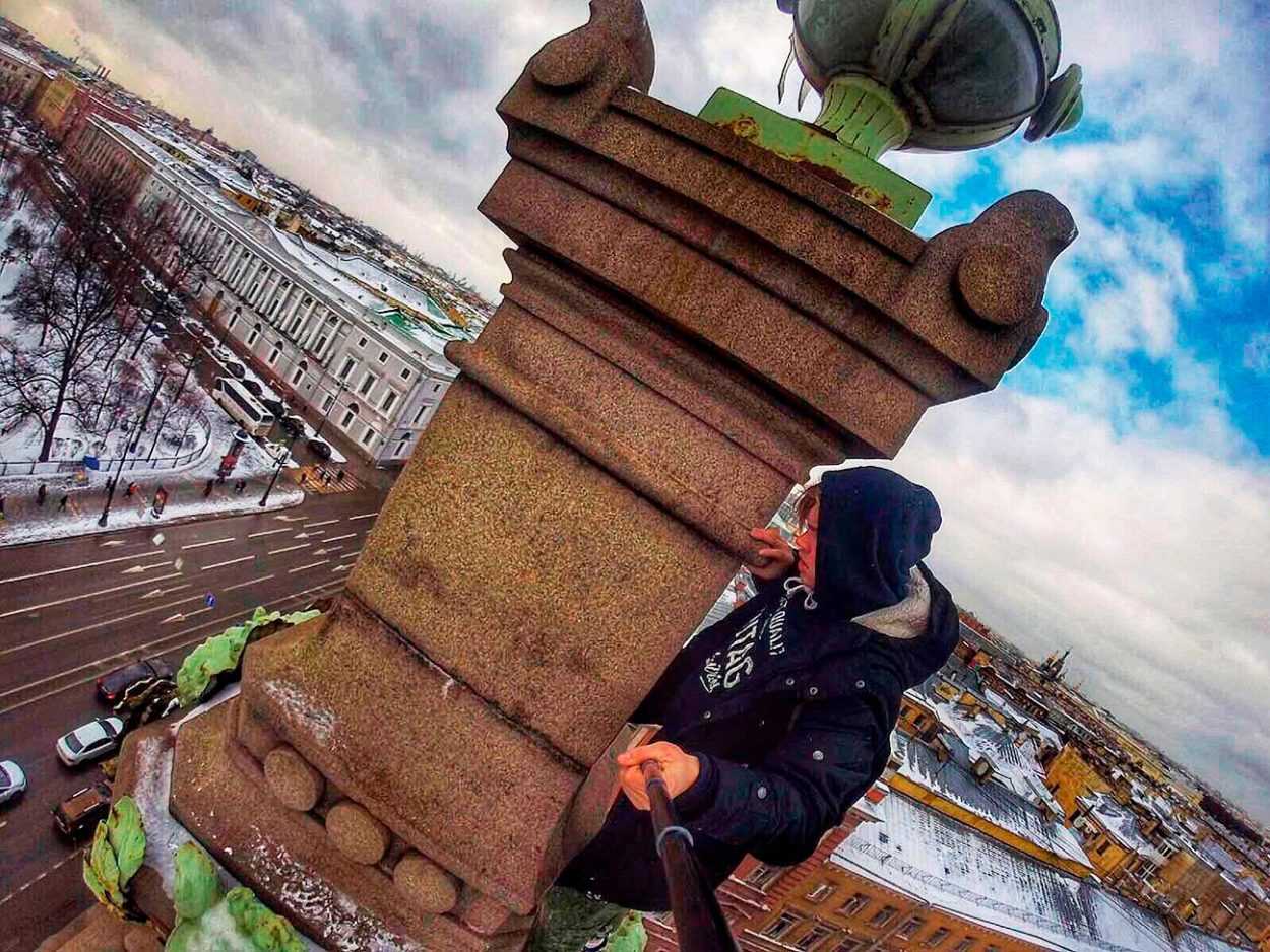 В России популярен городской альпинист, любитель заползти повыше без страховки Кирилл Орешкин. Он регулярно играет в рулетку с жизнью, осваивая новые экстремальные высоты и выкладывая фотоотчёты.