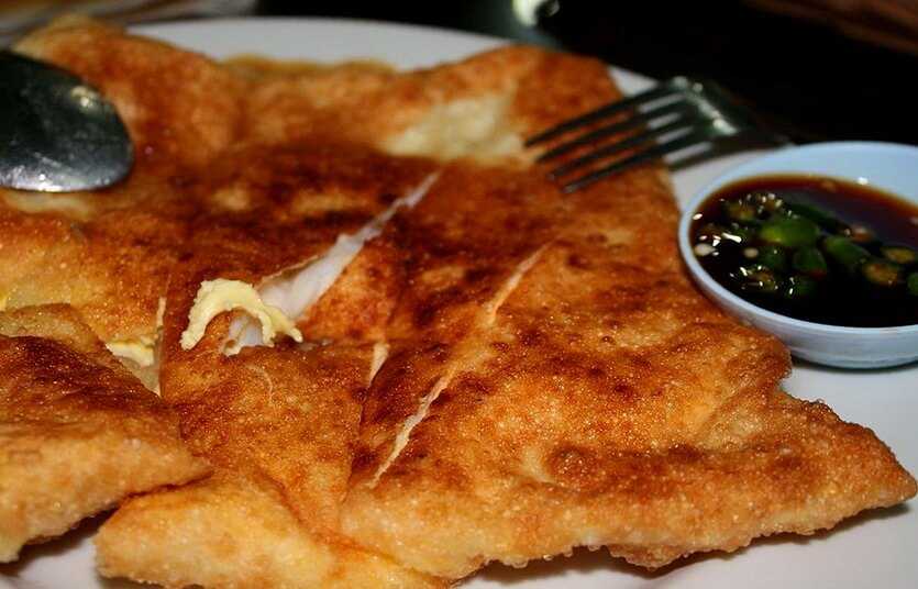 Кухня Таиланда также славится роти — вкуснейшими банановыми блинчиками. Процесс приготовления довольно прост: для начала раскатывается тесто в тонкий блинчик, после чего – выкладывается на сковороду. Внутрь десерта можно добавить любую начинку, но чаще всего это бананы. Сверху лакомство поливают сгущенным молоком, шоколадом или другими сладостями на выбор. Средняя цена – 40 бат.