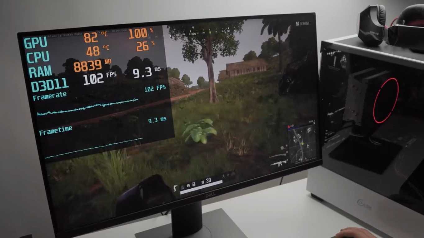 Следующей игрой запускаем PlayerUnknown’s Battlegrounds всё на очень низком, кроме текстур — они на высоких. Full HD, в общем киберспортивный пресет. И получаем в районе 90-100 FPS. График Frametime иногда подпрыгивает, система в этой игре не особо стабильна, но это нормальное поведение этой игры. На других системах наблюдается такие же всплески. Однако в процессе игры такие всплески не особо замечаются. В общем, играть вполне комфортно.
