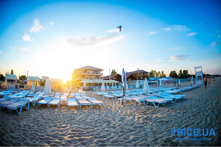 Идеальное место для любителей спокойного морского отдыха. Ночных дискотек здесь нет, разве что традиционные водные горки и аттракционы, а вот береговая линия – это 5 км экологически чистой зоны с чистым мелким песочком. Жилье: от 100 грн с человека за место в доме без удобств до от 700 за комфортабельный номер в пляжном отеле.