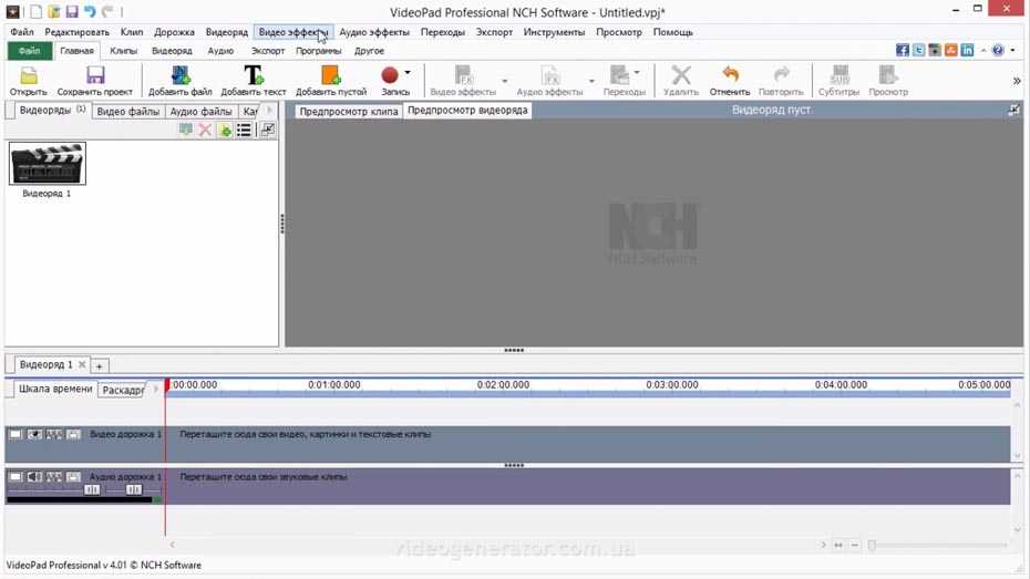 Интерфейс VideoPad