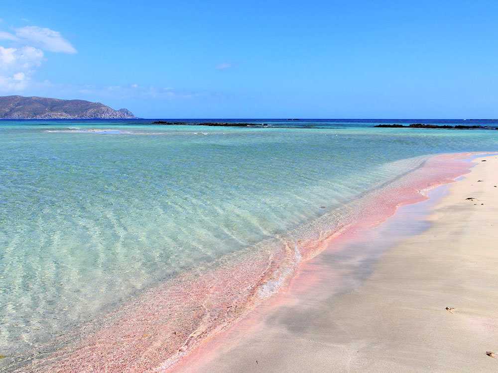 На островке Элафониси, что к югу от Крита, находится удивительный пляж Elafonisi Beach с лиловым песком, в котором смешались мелкие обломки ракушек, морских раковин и кораллов. Разглядеть розовый песок можно даже на глубине — Элафониси славится кристально чистыми водами. До пляжа можно добраться вброд: остров отделен от Крита узким мелководным проливом.