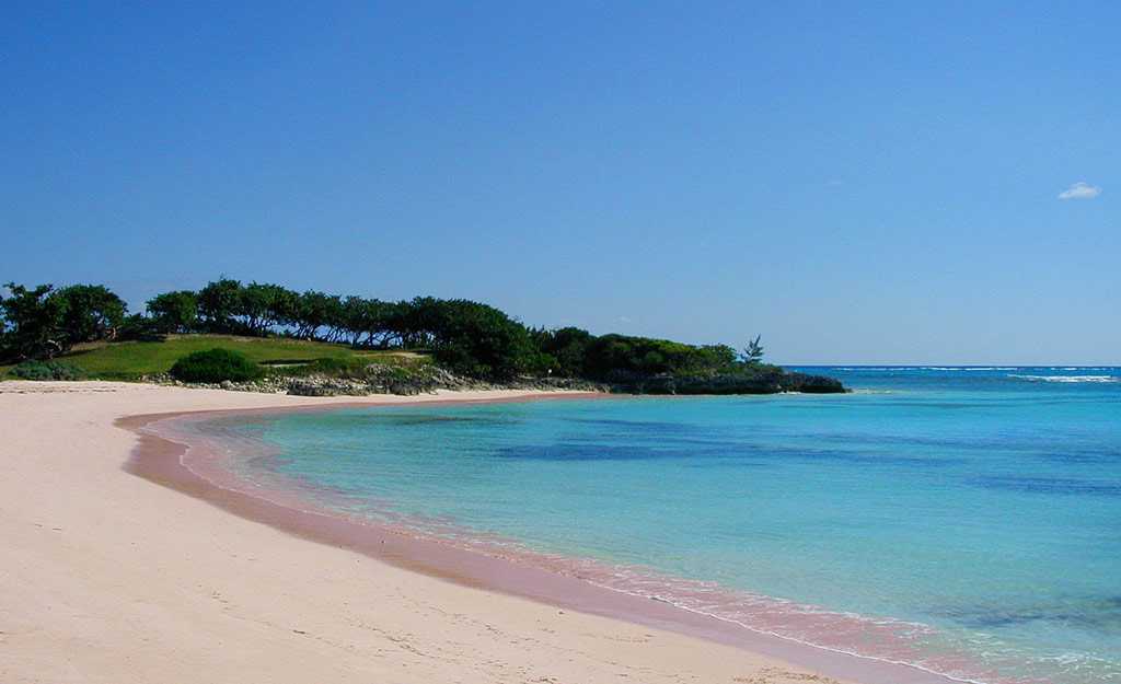 Пожалуй, наиболее известный из всех пляжей с розовым песком в мире, Розовый пляж располагается на восточном побережье острова Харбор. Второе его название – остров Розовых песков. Его протяжённость – около 5 км мелкого порошкообразного песка оранжево-розового цвета. Это великолепное побережье то и дело попадает в список лучших пляжей Карибского региона.