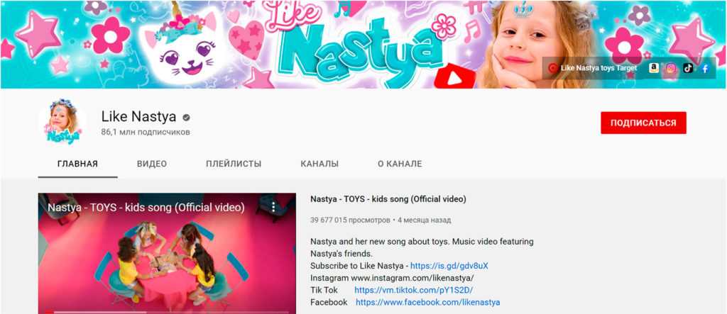 Детские каналы очень популярны на YouTube, поэтому у нас есть несколько таких в списке. Этот канал посвящен девочке из России по имени Диана, а контент посвящен ее жизни и тому, каково это-быть ребенком. Видео включают в себя распаковку игрушек, испытания, поездки и другие занятия, которыми занимаются дети.