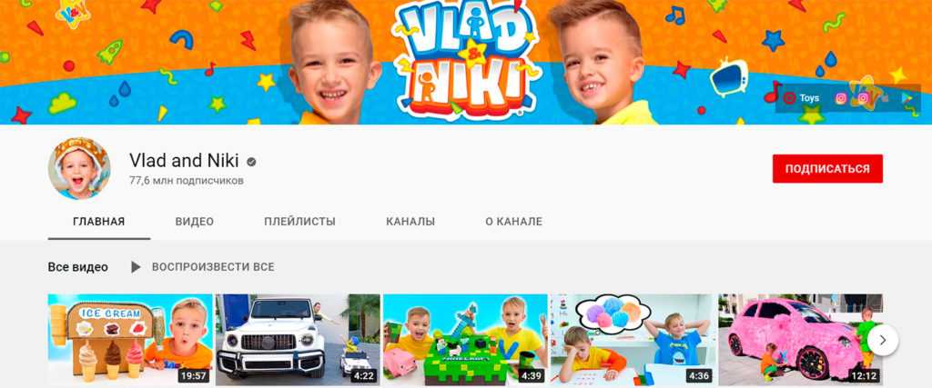 Пятое место с самым большие количеством подписчиков занимает канал снова наших соотечественников (пока пишу эту статью взяла гордость за наших, но очень грустно, что это все направлено к сожалению на деградацию детей, а не на развитие) . Как вы поняли анал принадлежит двум братьям Владу и Нику снимаются. Видео показывают, как братья играют с игрушками и демонстрируют свои ежедневные приключения.
