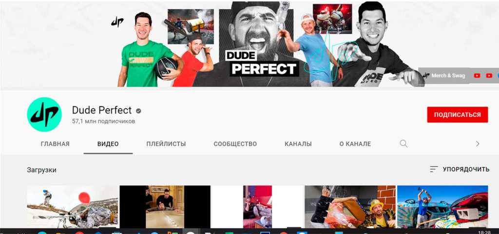 Dude Perfect — Кори и Коби Коттон, плюс три друга по колледжу (Тайлер Тони, Гаррет Хилберт и Коди Джонс) парни известны своими подборками трюковых снимков и списком известных спортсменов, которые появляются рядом с ними в их видео. Канал расширился до комедийного, и к съемочной группе часто присоединяется в своих видео талисман гигантской Панды )))