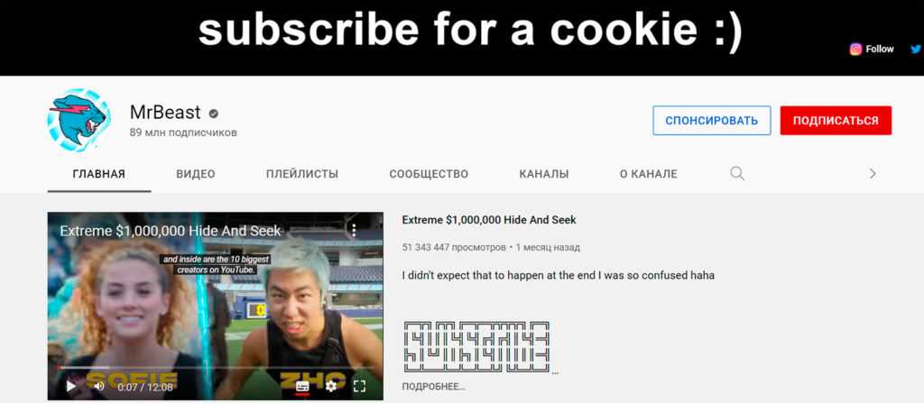 MrBeast известен двумя типами видео: вирусными вызовами — от «Подсчета до 100 000 в одном видео» до «Кто последний уберет руку» — делает шокирующие пожертвования и благотворительные трюки в которых он будет раздавать тысячи долларов официантам, незнакомым людям и т.д.