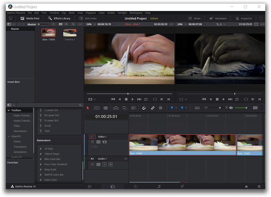 Для ознакомления с программой мы рекомендуем посмотреть онлайн уроки, доступные на таких ресурсах как Lynda и Udemy, а также инструкции, опубликованные поклонниками программы на YouTube. Безусловно, вы можете освоить интерфейс Davinci Resolve самостоятельно методом проб и ошибок, однако приготовьтесь к тому, что в программе придётся провести не один час. Впрочем, результат, которого можно добиться, того стоит. С точки зрения цветокоррекции и работы с градиентом, Davinci Resolve нет равных среди бесплатных программ. Базовые операции, такие как обрезка, состыковка фрагментов, работа со звуком и с текстом — тоже доступны в меню быстрого доступа.