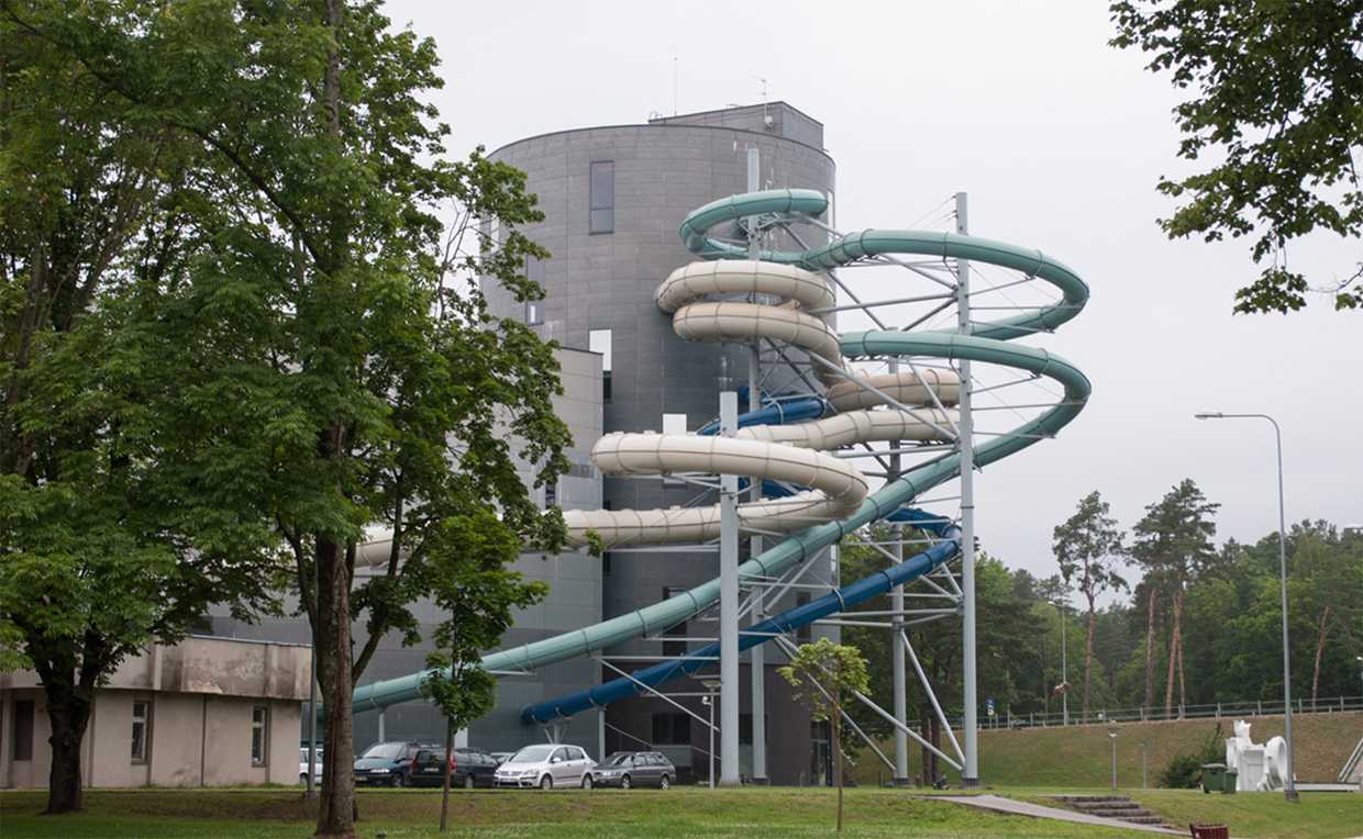Но иногда здания устраивают под современные нужды с максимальной экономией. Это, например, случилось с физиотерапевтической лечебницей в литовском Друскининкае. Сейчас его превратили в аквапарк.