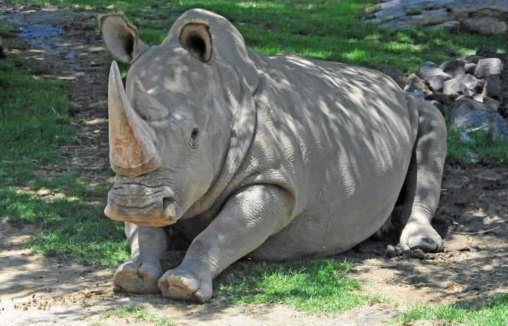 Нет-нет, это вовсе не носорог-альбинос, а отдельный вид, точнее 2 его оставшихся в живых представителя. Последнего самца, увы, пришлось усыпить в прошлом году по состоянию здоровья, да и возраст для носорога был солидный – 45 лет.