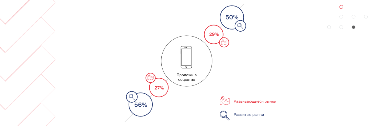 При этом есть значимая межстрановая разница между покупательскими привычками в онлайне: в ведущих экономиках мира пользователи делают покупки на маркетплейсах, в то время как на «догоняющих» территориях всё активнее используют для этих целей соцсети.