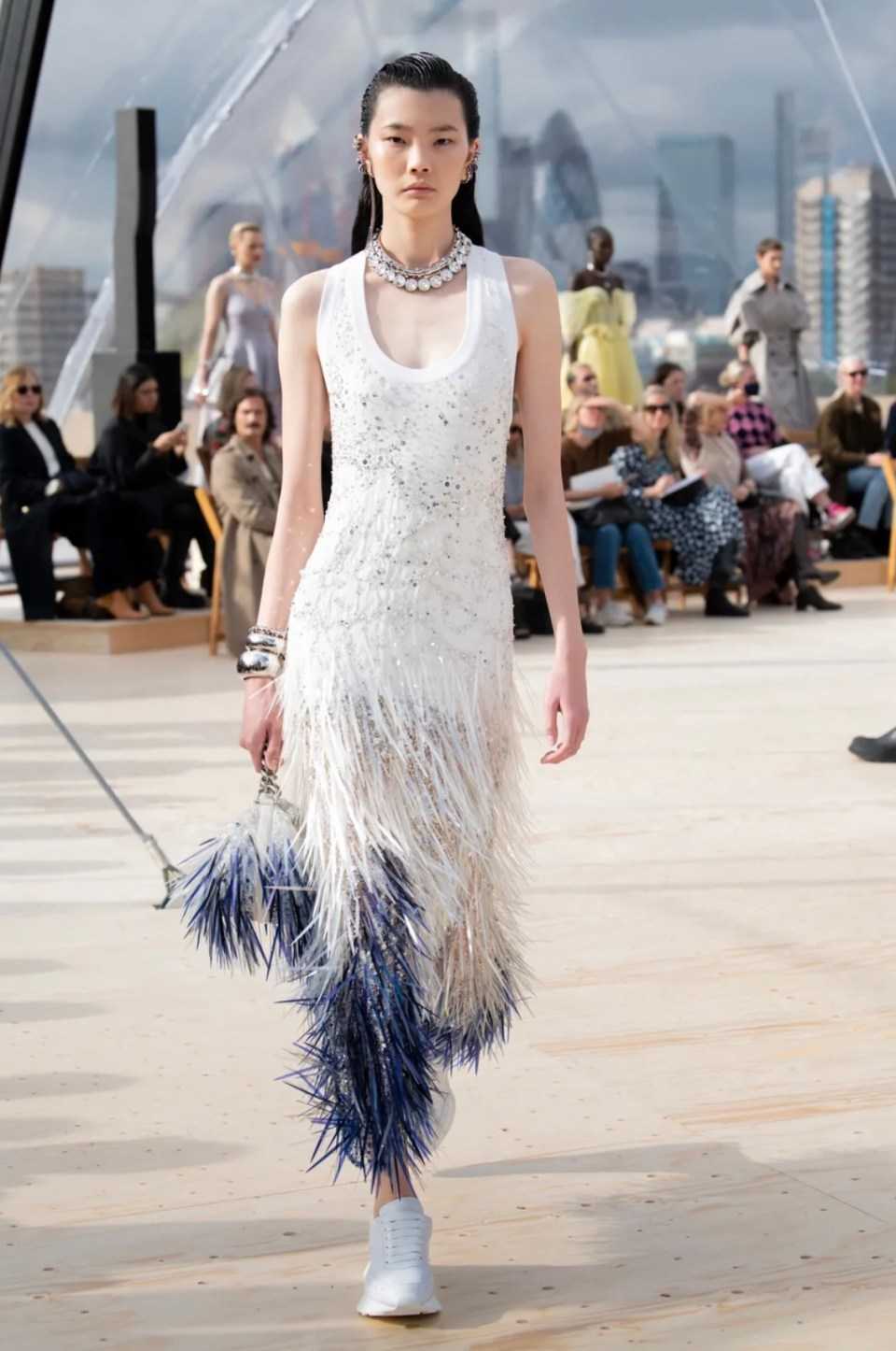 Перья придают образу гламур и праздничность, однако выбирая наряд, украшенный перьями, стоит обратить внимание на удобство и уместность этого тренда. Например, платье из перьев может оказаться слишком теплым для лета