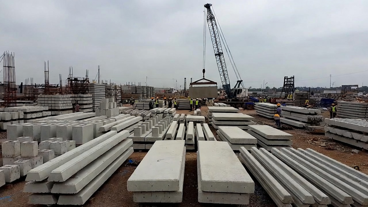 - Несущие и ограждающие элементы: плиты перекрытия, колонны, ригели, стеновые панели — обеспечивают жёсткость и устойчивость каркаса здания.